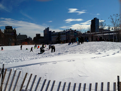 | Outside my office, going home for the day. Slippery sidewalk! I took the train instead of walking as usual. |